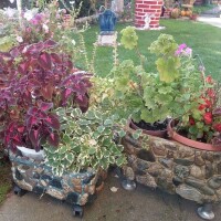 "Po struci sam ekonomista, ali se snalazim u radu s drvetom, kamenom, betonom… Tako sam bez problema od obične stare drvene kace napravio bunarić, od starih panjeva, starih lonaca, lavaboa, vodokotlića pravim posude ukrašene kamenom i drugim materijalima, pravim ih i od betona i starih krpa i izgledaju vrlo dekorativno", priča Nikola dok obilazimo mali cvetni raj u njihovom dvorištu.