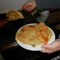 "Suština je da se testo štu duže 'odmara', jer su gibančice onda baš kako treba. Onda se testo razvije na veličinu tanjira. Na polovinu se stavi sir, preklopi se, krajevi se spoje, a gibančice se peku u velikoj masnoj šerpi. Može i ulje da se koristi, ali mast je mast. Kada bi nama zabranili da koristimo mast, to bi bilo kao kada bi Eskimu zabranili da jede ribu", kaže domaćica.