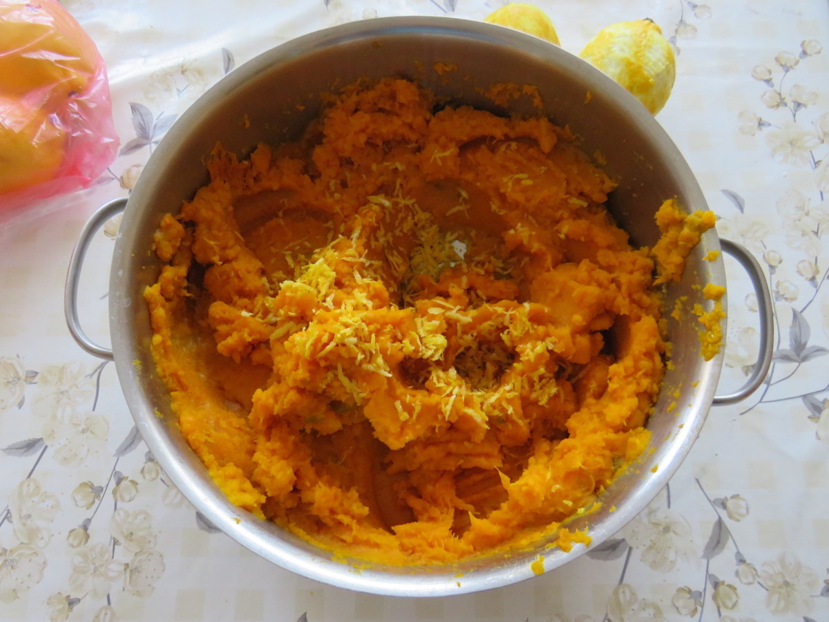 Skuvanu tikvu ocedimo od vode i pasiramo. Ako volite da ostanu komadići, dovoljno će biti da koristite gnječilicu za krompir kada su u pitanju manje količine.