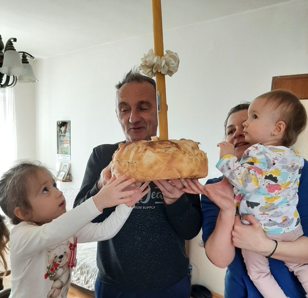 Veče pred slavu ja umesim slavski kolač, dok su deca bila mala zajedno smo ga ukrašavali, sutradan ga nosimo u crkvu,naravno i slavsko žito koje uvek pravi moja ćerka!!!