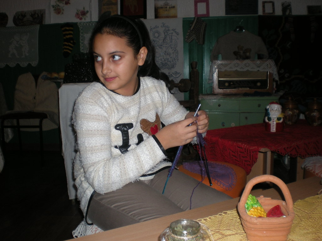 "Naučila sam svašta da radim, ali najviše mi se sviđa štrikanje. Štrikala sam šalove, džemper, rukavice, a baka mi je malo pomogla. Drugari me uvek pitaju gde sam to kupila, a kada im kažem da sam to sama napravila jako se iznenade. Onda i oni žele da krenu na radionicu da nešto nauče. Volim i da pravim kolače, a kažu da sam specijalista za baklave. Inače, kore kupujem. Isečem ih na trake, napunim ih šećerom i orasima i onda to savijem u trougao i poređam u tepsiju. Kada se ispeku, skuvam sirup i prelijem ih da budu sočne. Kada dolaze gosti ja ponekad napravim baklavu. Neki baš i ne veruju da sam to sama uradila, ali svi kažu da je odlična“, sa osmehom kaže Tamara.