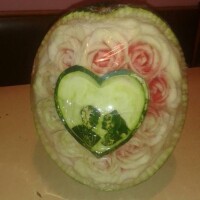 Najviše voli da radi sa lubenicom, i to sa onom koja ima debelu koru, gde može da se igra bojama i šarama. I kada pogreši, lubenicu sa svojim ukućanima pojede u slast. Pa i ona koju izrezbari prema svojoj zamisli, na kraju završi kao desert.