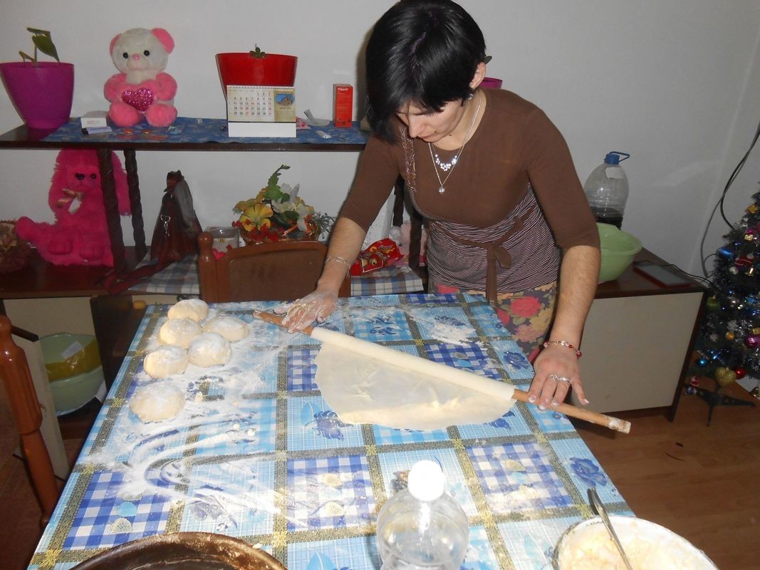 Od ovako rastanjenih kravajčića ona obično napravi pet tankih kora. Čim rasuče prvu dobro je zamasti mašću ili zejtinom, a potom na nju u tankom sloju nanese već spremljeni fil od sira, jaja i kisele vode. Kada to uradi ona kažiprstom, po sredini, sakupi koru tako da dobije oblik cveta. Svaku laticu cveta potom krene da slaže jednu na drugu kako bi dobila zgužvanu poluloptu. Ovako oblikovane kore uredno naslaže u podmazanu tepsiju, naulji odozgo i ispeče u dobro zagrejanoj rerni.