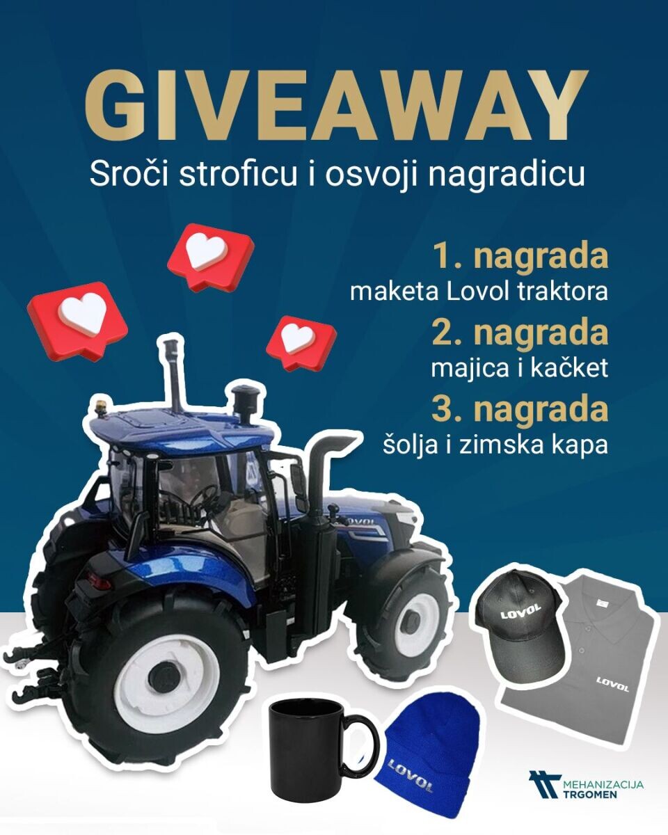 📌 Tri komentara sa vašim pesmama koji budu imali najviše lajkova osvajaju maketu Lovol traktora.