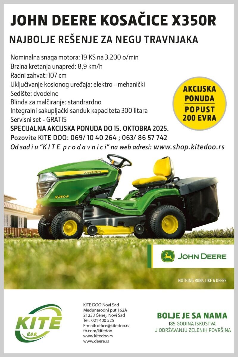 Precizne Poljoprivrede”, “KITE Tehnologije - KiTeh” i “Rezervni delovi i oprema” će biti tu za Vas, za savet, za konsultacije, sugestije i detaljne informacije u vezi sa trenutnim akcijama, kompletnim prodajnim i uslužnim programom kompanije KITE DOO, ali i za informisanje o najpovoljnijim modelima finansiranja.