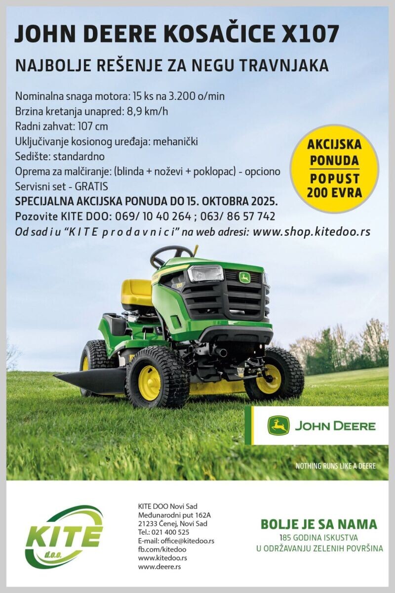 Na unutrašnjem izložbenom prostoru kompanije KITE DOO, u Auli Novosadskog sajma, pored agronomskih repromateriala i artikala iz naše KITE PRODAVNICE (maziva, materijala za redovno održavanja, igračaka, odeće i aksesoara), stacionarno će biti prikazane sledeće mašine: