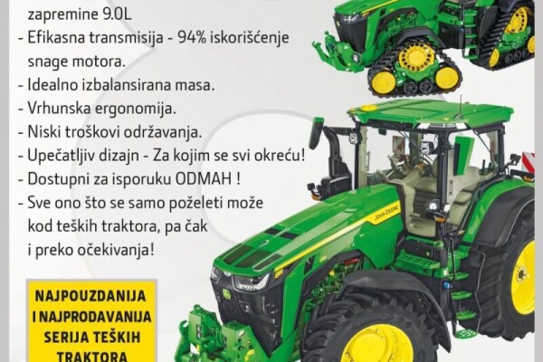 * Traktor John Deere 8R 280 – model iz najpouzdanije i najprodavanije serije teških traktora u svetu.