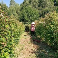 Kod ovog mog, koji ima oko 50 ari pod tom voćnom vrstom, malina je šarolika. Na više od pola površine nalaze se stari zasadi koji imaju neverovatno dobar i krupan plod s obzirom da je bila suša. Četiri ploda i puna šaka! Valjda okružena šumom, malina je zadržala svežinu. I još neverovatnija je priča da je taj zasad star 40 godina (njega je podigao otac mog poslodavca) i da sorta vilamet rađa kao da je u punom jeku zrelosti. U tom malinjaku na jednom metru može da se nabere voća za gajbicu. Nije ni čudo što svi berači vole baš tu da rade.