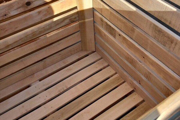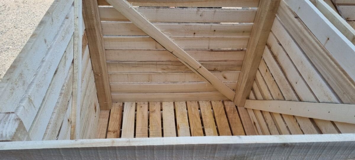 🪵Daske su provucene kroz Diht masinu tako da su glatke (da ne bi ostetile plod i upijale vlagu) sa spoljnje i unutrasnje strane, tacan razmak izmedju letvi radi strujanja vazduha u hladnjaci.