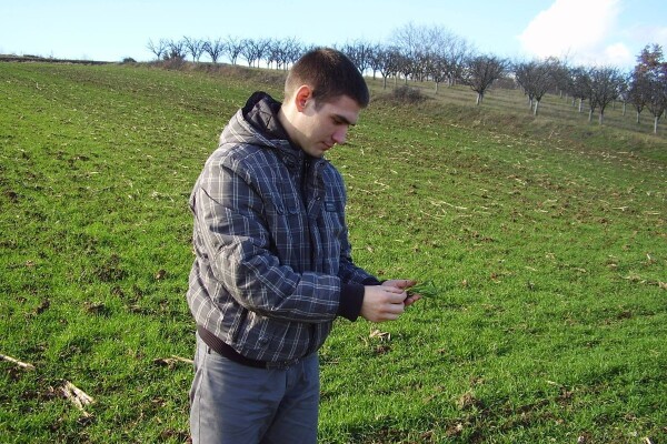 Pregled pšenice zasejane na parceli u okolini Kragujevca. Pšenica je trenutno na početku faze bokorenja i na njoj nisu primećeni znaci pojave prouzrokovača oboljenja, kao ni napada štetočina.