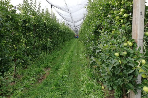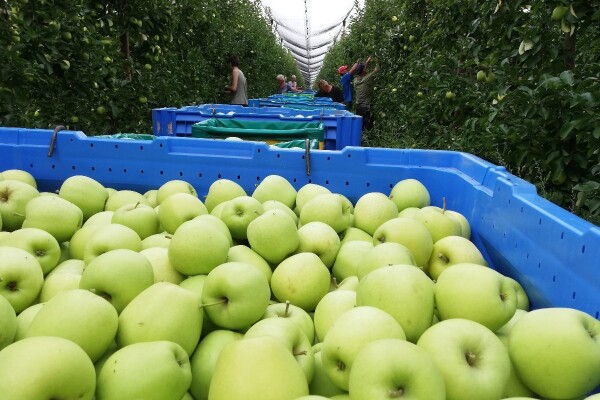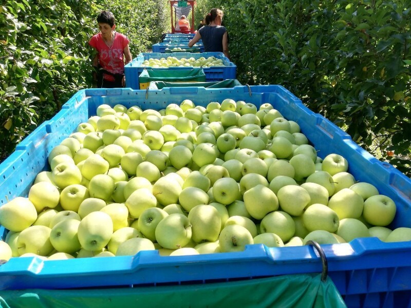 Berba jabuke sorte zlatni delišes je u punom jeku. Jabuka je u prepodnevnim satima vlažna od rose i izuzetno osetljiva, pa svaka nepažnja tokom rada dovodi do oštećenja ploda.
