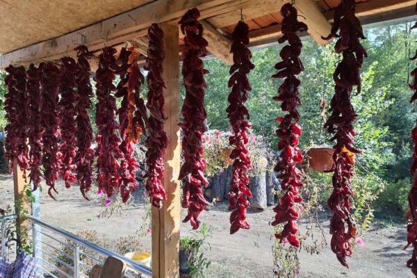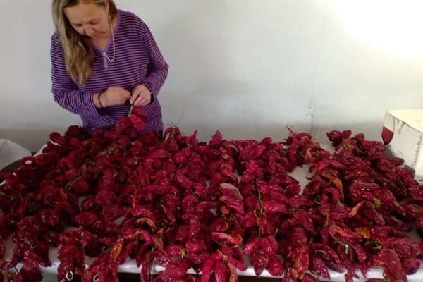 Meštanka Trgovišta, Marica Stojmenović, na nizovima niže autohtone sorte paprike.