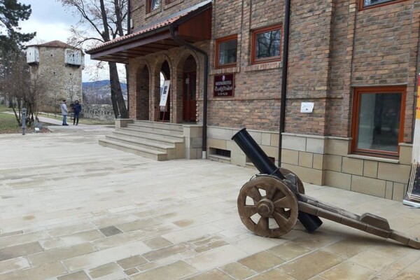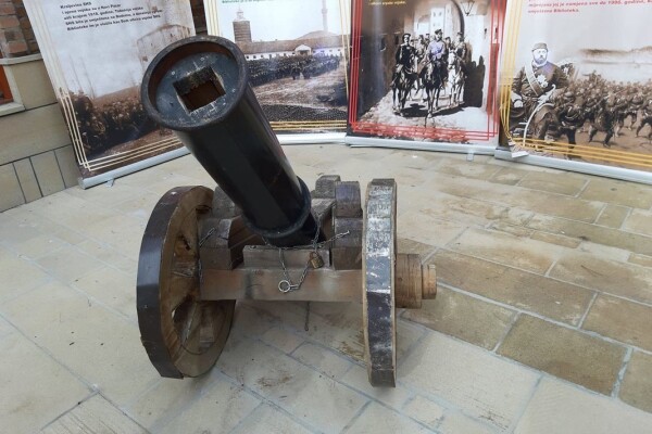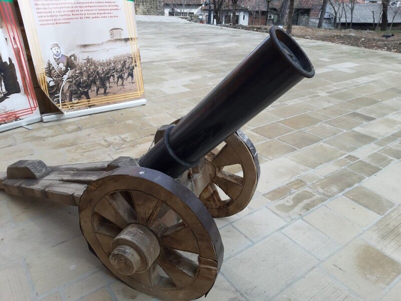 Stari top ispred Narodne biblioteke u Novom Pazaru.