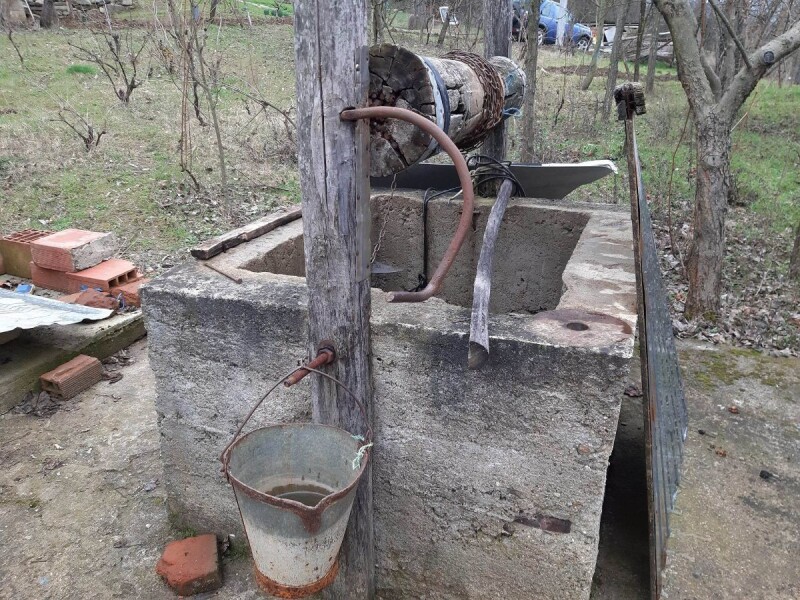 Iako je vreme pregazilo, ova kofa za vađenje vode iz bunara je nezamenljiva kada nestane struja.