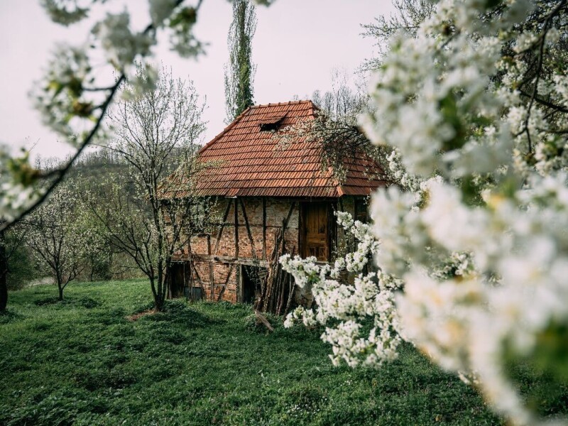 U srcu proljeća, dok miris cvjetova mami pčele, ova stara kuća stoji kao nijemi svjedok nekih prošlih vremena. Njeni zidovi, isprepleteni ciglom i drvetom, pričaju priče o radu, ljubavi i zajedništvu. Okružena voćnjacima u punom cvatu, ona podsjeća da prava ljepota sela nije u savršenstvu, već u harmoniji prirode i tradicije. U ovom prizoru, prošlost i sadašnjost dišu istim dahom.