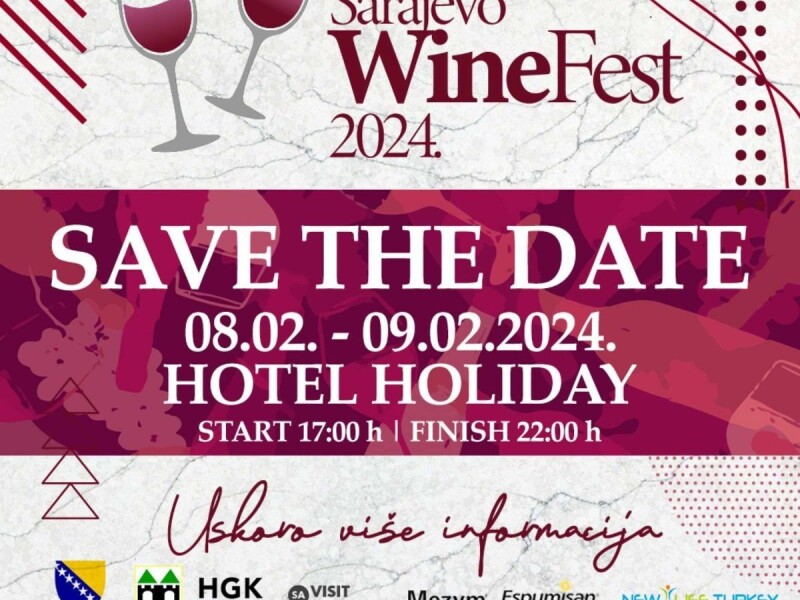 Ljubitelji vina u Sarajevu odbrojavaju dane do 17. izdanja Internacionalnog festivala vina i gastronomije "Sarajevo wine fest 2024". Jedan od najvećih festivala vina i gastronomije u toj zemlji biće održan 8. i 9 februara u sarajevskom hotelu Holiday. "Sarajevo wine fest 2024" okupiće preko 60 izlagača, domaćih i stranih proizvođača vina i prehrambenih proizvoda iz Hrvatske, Srbije, Crne Gore, Slovenije, Severne Makedonije, Mađarske, a koji će prezentovati preko 250 etiketa vrhunskih vina uz bogatu gastro ponudu sireva, maslinovog ulja, mesnih proizvoda i peciva. U sklopu festivala, prvi i drugi dan, biće održan veći broj stručnih i vinskih radionica za izlagače i posetioce. #sajamvina