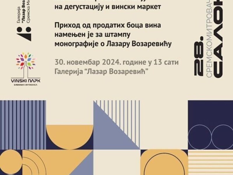 Vinski park Sremska Mitrovica pozvao je sve ljubitelje likovne umetnosti, ali i ljubitelje vina, na jedinstven događaj – degustaciju vina i vinski market koji će se održati u Galeriji ”Lazar Vozarević“ 30. novembra u 13 sati. Prihod od prodaje boca vina namenjen je za štampu monografije o Lazaru Vozareviću, značajnom umetniku iz Sremske Mitrovice, tako da će posetioci, osim kupovine vrhunskih vina, imati priliku i da podrže kulturni projekat. Štampanje monografije je planirano za sledeću godinu, kada će se obeležiti sto godina od rođenja ovog slikara. Manifestacija se održava u okviru 28. Sremskomitrovačkog salona vina. Degustacija vina je besplatna, a plaćaće se samo flaširana vina. #sremskomitrovackisalonvina