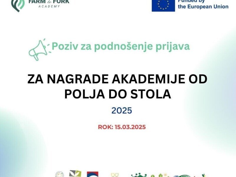 Nagrade Akademije od polja do stola predstavljaju važan zamah regionalnog projekta ”Akademija od polja do stola za zeleni zapadni Balkan – Naša zajednička evropska budućnost“ koji finansira Evropska unija i zajednički sprovodi porodica nacionalnih mreža za ruralni razvoj u šest zemalja Zapadnog Balkana i Hrvatskoj. Ovaj konkurs je namenjen pojedincima, poljoprivrednicima, udruženjima poljoprivrednika, zadrugama, ali i školama i drugim institucijama. Projekti koji se prijave treba da imaju inovativni karakter – da demonstriraju nove pristupe, nove organizacione metode ili razvoj novih (ili značajno) poboljšanih rezultata za organsku proizvodnju. Projekat treba da bude ekološki, društveno i ekonomsko održiv, i da ga je moguće implementirati i na drugim lokacijama. #odpoljadostola