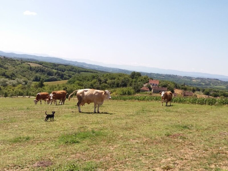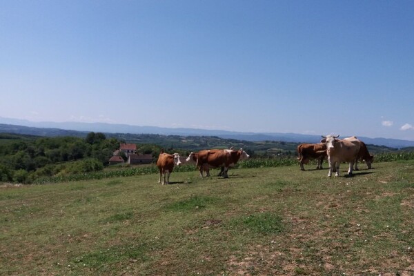Selo Trbosilje, obronci planine Cer. Krave na slobodnoj ispasi. Vlasnik Milic Milun kaze da u ovakvom sistemu gajenja krave daju mnogo vise mleka i da su boljeg zdravstvenog stanja.