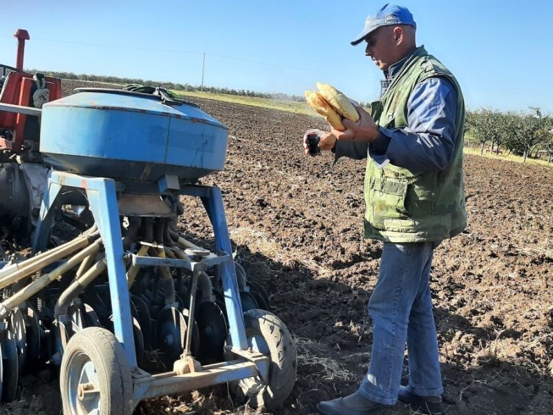 Stari običaj prilikom setve pšenice. Domaćin lomi pogaču na njivi kako bi naredne godine pšenica dobro rodila. Selo Jakovac, opština Knjaževac