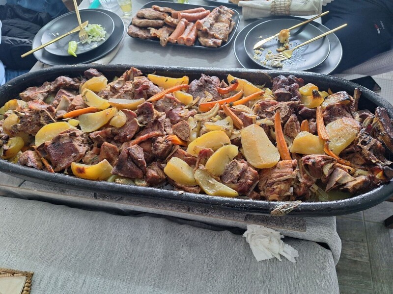 Jagnjetina i divljač sa povrćem u metarskoj posudi..