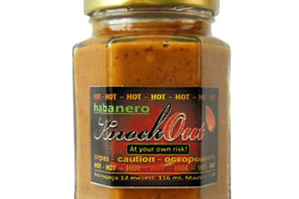 Cena: 400 din. KNOCKOUT je EKSTREMNO ljut sos, načinjen od biranih sorti ljutih papričica: Piri Piri (African bird’s eye chil), Cherry Hot Pepper, Naga...