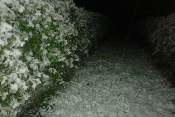 Malina pod snegom u Arilju. Foto prosledio Božo Joković direktor zadruge AgroEko voće.