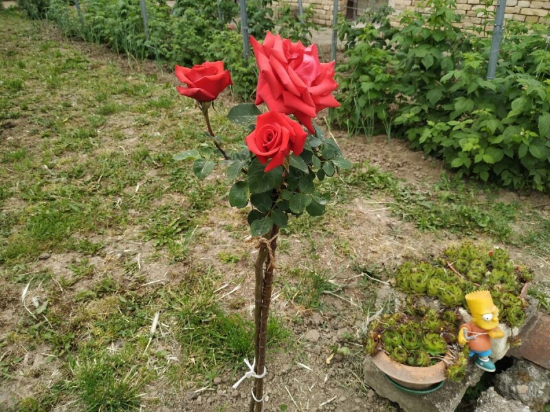 A pazi što dole vreba Bart Simpson sa praćkom. A u pozadini su maline. Počele su da daju već prve plodove. Stalnorađajuća sorta autumn bliss.