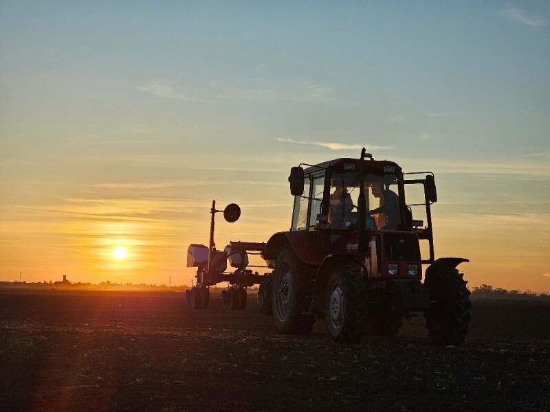 Vojvođanski zalazak sunca uz sliku koja prikazuje setvu, početak jedne nove sezone #RuralFoto #selo