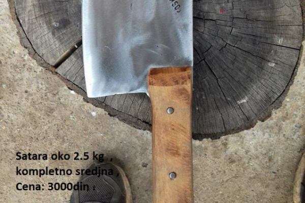 Cene su u sklopu slike .Sekire su RUCNO izradjene od kvalitetnog materijala (celik) . Sve nase alatke su isklepane , okaljene , i odostrene . Na svaki nas proizvod imate garanciju . Ovakve klasicne sekire imamo i u kilazi ok 500g do 4 kg : D Moguce je narucivanje bilo koje tezine.Makaze su izradjene od feder platna . Imate nareckani deo da ne bezi kost. Saljemo pouzecem . Pozovite da se doogovrimo 0612524453 Nismo preprodavci , ovo nam je porodicna tradicija decenijama u nazad. Klinovi su takodje rucno kovani , ostreni i okaljeni . Narecnaki su da se ne bi vracali prilikom nabijanja. Sve sto vas interesuje pitajte u poruci