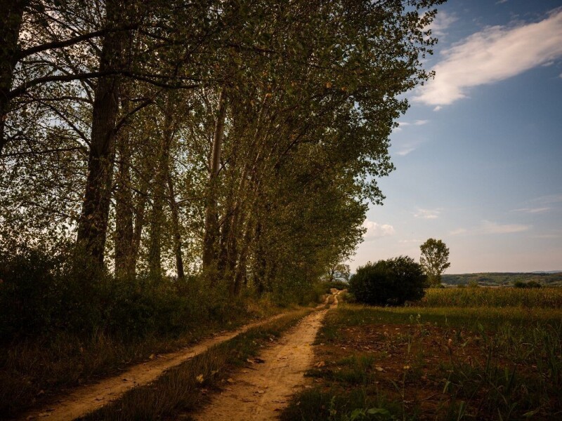 Seoski put pod krošnjama, polja dišu u daljini. #RuralFoto #priroda