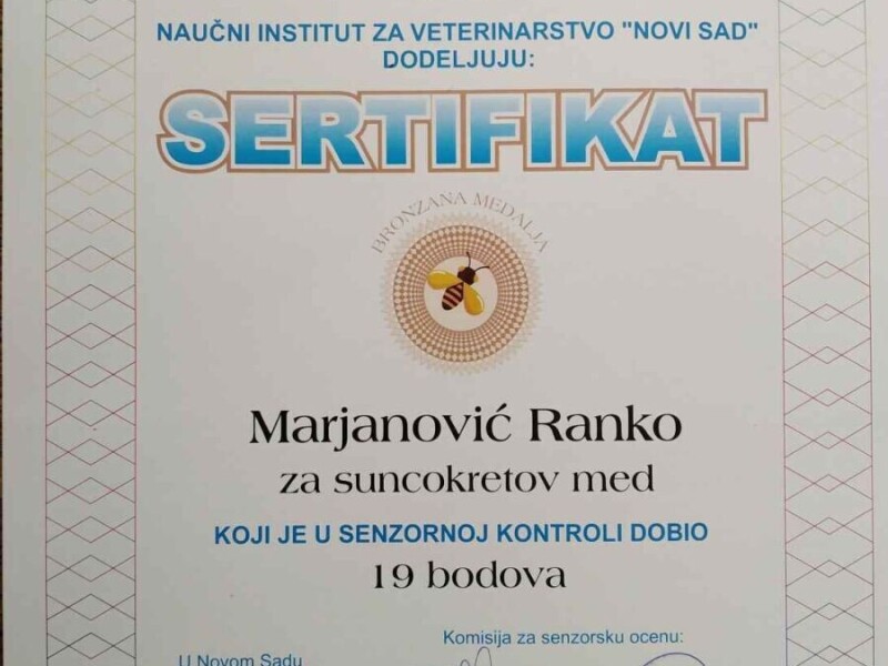 "Prodajem 1t mešanog meda i 1t suncokretovog meda. Cena 2,3 € po kg. Telefon: 062 87 30 073 e-mail: marjanovicdjordje85@gmail.com Ime i prezime: Marjanović Ranko Mesto: Jaša Tomić"