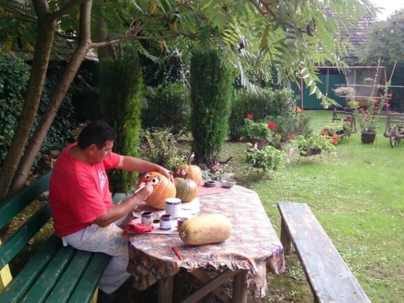 Vlado Blažek iz Pivnica ukrašava tikve, on i supruga Jarmila tako će kao i svake godine ukrasiti svoje dvorište.