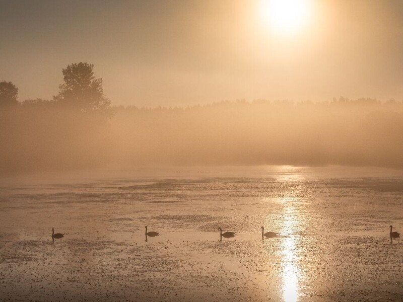 Labudja porodica koja je uranila da pre guzve zauzme najbolje mesto za ribolov i odmor u toku predstojeceg vrelog dana na Beocinskom dunavcu. #RuralFoto #životinje