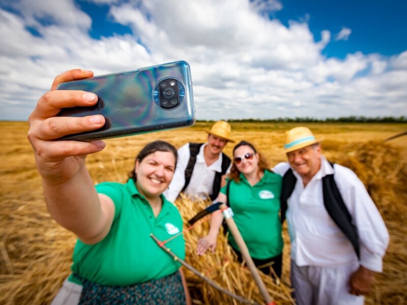 Grupno fotografisanje ekipe ispred njihovog plasta sa snopovima žita. 38. Tradicionalni žetelački dani u Mužlji 03.07.2021. #RuralFoto #Selo