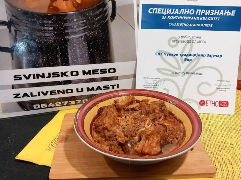 "Vlaška magija" opravdala učešće na međunarodnom sajmu etno hrane i pića 2025.Specijalno priznanje za gotovo jelo- svinjsko meso zaliveno u masti, za kontinuirani kvalitet.