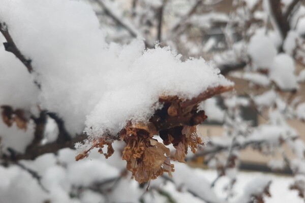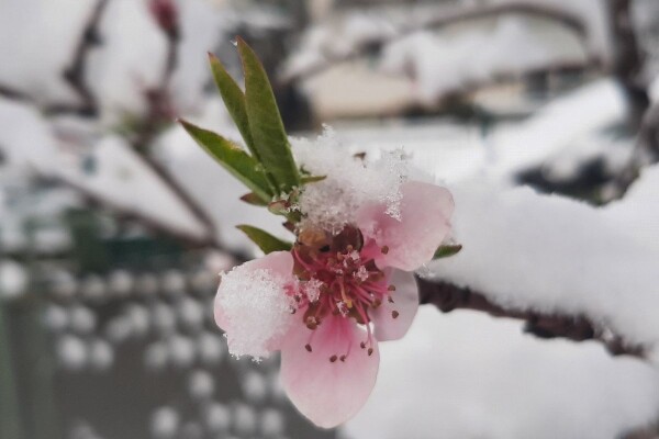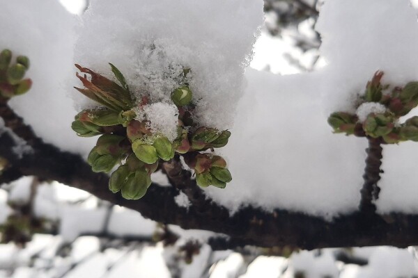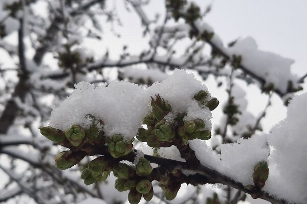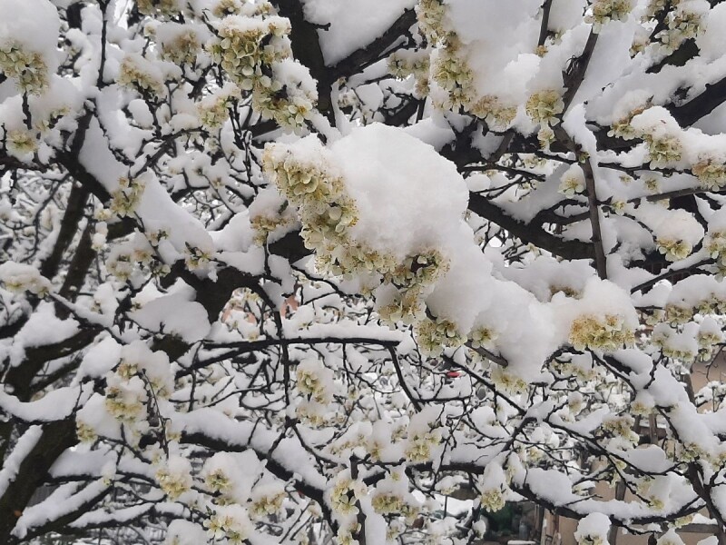 Višnja, trešnja, kajsija, šantelija.... Sve pod snegom jutros... :-(