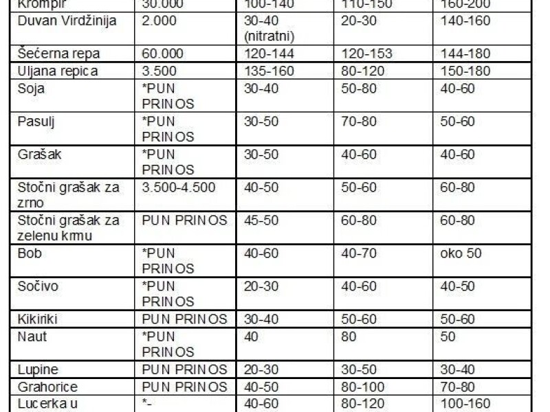 POTREBE POLJOPRIVREDNIH KULTURA ZA HRANLJIVIM ELEMENTIMA NPK U ZAVISNOSTI OD IZNOŠENJA PRINOSOM, NUSPROIZVODIMA, KOEFICIJENATA ISKORIŠĆAVANJA I PLANIRANIM PRINOSOM (TAB. 1).