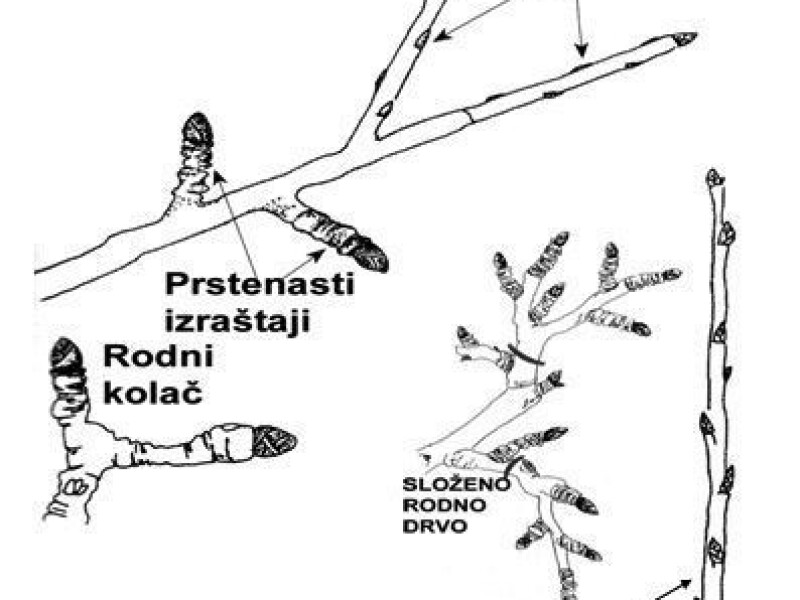 Napomena autora: kod jabučastih i koštičavih voćaka se javljaju nerodne grančice različite dužine i izraštaji tipa bodlji (izbegavati naziv trnoviti izraštaji), s tim da kod jednih i drugih, karakteristične nerodne grančice su vodopije dužine do 2 m i više (obrada, dipl. ing. Stanko Nekić, 2005.).