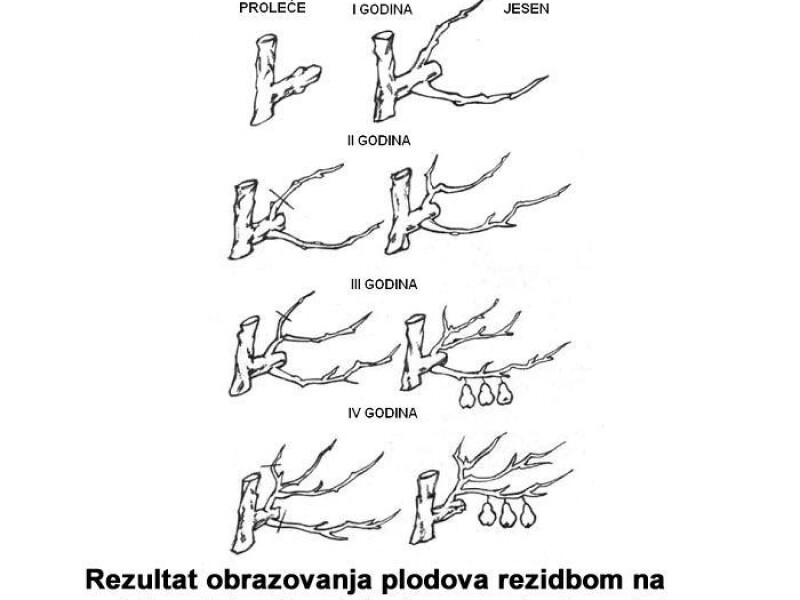 Karakteristike ovog uzgojnog oblika su da se duž provodnice formira veći broj rodnih jedinica (čvorova), najčešće 20 do 25, kao rezultat primenjenog sistema rezidbe. Rodnu jedinicu sačinjava kraći patrljak na kome se nalazi veći broj prirasta: jednogodišnjih, dvogodišnjih sa kratkim rodnim grančicama i trogodišnjih koji nose plodove. Posle berbe, trogodišnje drvo uklanja se kosim rezom na patrljak. Na ovaj način obezbeđuje se da se na svakoj rodnoj jedinici nalaze jedno, dvo i trogodišnji prirasti.