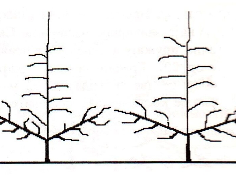 Kod voditeljica centralne i prvih dveju osnovnih grana ne vršimo prekraćivanje. Međutim, III, IV godine prve dve osnovne grane skraćujemo na bočne letoraste, što isto činimo sa centralnom vođicom. Rastojanje u zasadu iznosi 4 - 5 x 2 m.