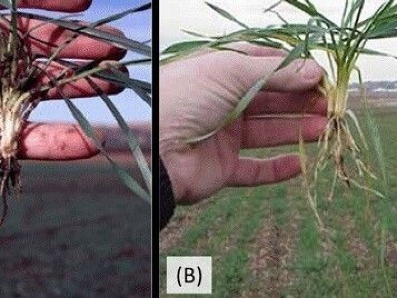 Primarni korenčić pšenice (A) i bokorenje u korenu i stablu pšenice (B). Stanko Nekić.