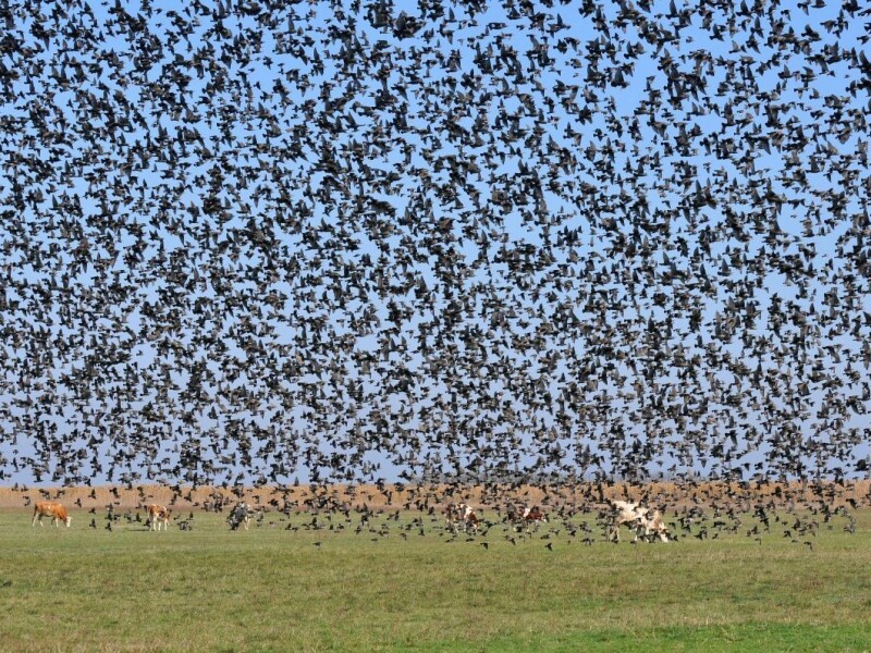 Ovo je snimljeno na Slanom Kopovu, na slici je preko 10.000 čvoraka u jatu