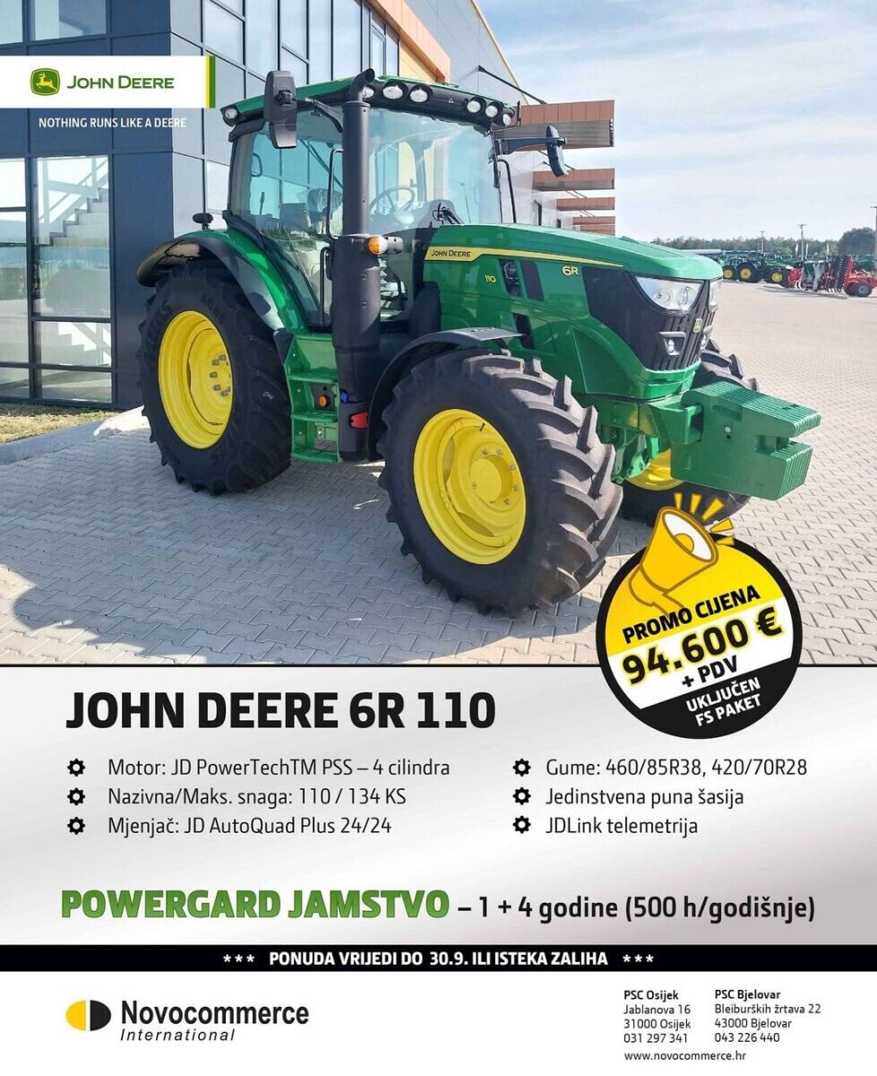 JOHN DEERE 6R 110 - PROMO‼️ Zahvaljujemo svima koji su prepoznali prednosti kupovine John Deere strojeva 🤝. Broj strojeva dostupnih za isporuku odmah svakim danom je sve manji‼️ Predstavljamo Vam zadnji dostupan 6R 110 po cijeni od 94.600€ + PDV. Za više informacija i uvjete financiranja 📞👇 https...