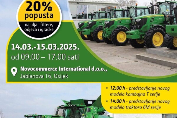 DANI OTVORENIH VRATA U NOVOCOMMERCE ‼️ Kada? 🗓 14. i 15.3.2025. Gdje? 📍 Novocommerce Osijek Što? 🤗 Već tradicionalno druženje na danima otvorenih vrata u našem dvorištu. Označite u komentaru koga vodite na najbolje Dane otvorenih vrata u Hrvatskoj? 💚💛 John Deere + Novocommerce = Broj 1 u 🇭🇷 #nov...