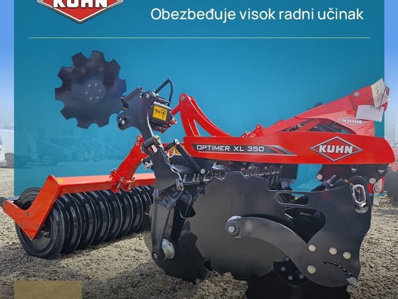 KUHN Optimer XL350 je kratka i kompaktna tanjirača koja će vam brzo završiti posao, jer je izuzetno efikasna u ljuštenju strništa i pripremi zemljišta.