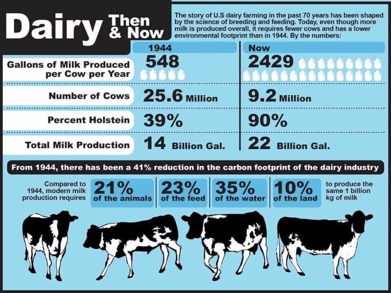 Ako dobro računam, danas više od duplo manje krava proizvodi gotovo pet puta više mlijeka. Di to može bit normalno? :-/