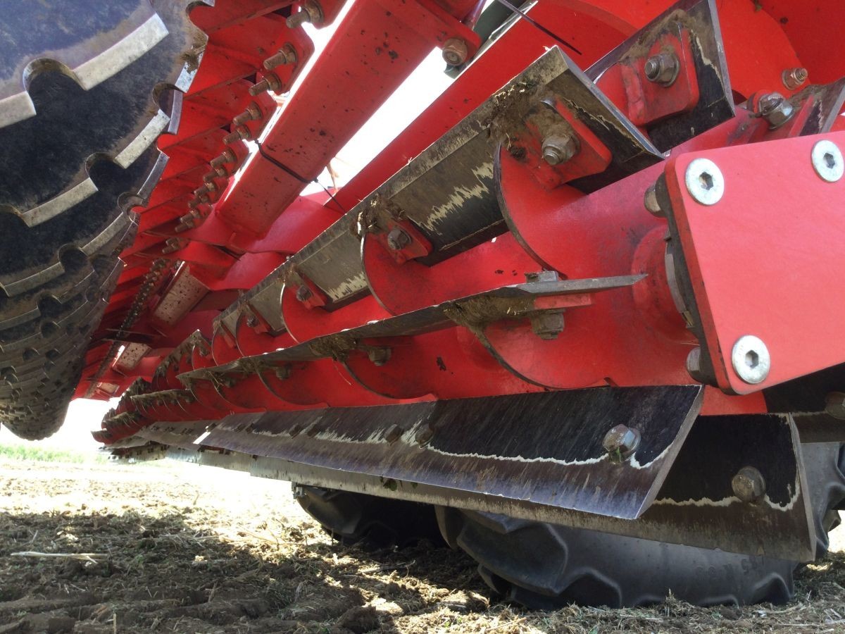Odsecanje rezidua se vrši i u horizontalnoj i u vertikalnoj ravni, horizontalno odseca nožasti valjak, a vertikalno sečenje obavljaju nazubljeni diskovi jednako raspoređeni na 170 mm.