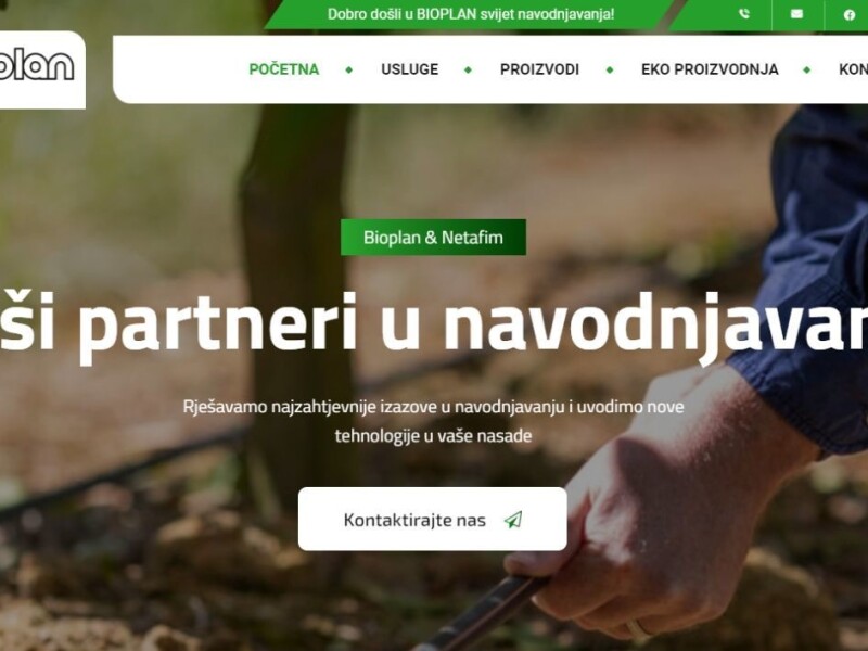 Već više od 15 godina projektiramo sustave za navodnjavanje te pomažemo odrediti optimalno i najekonomičnije rješenja za vaš nasad. Pogledajte našu novu web stranicu i javite nam se za savjete i ponudu: https://www.bioplan.hr/