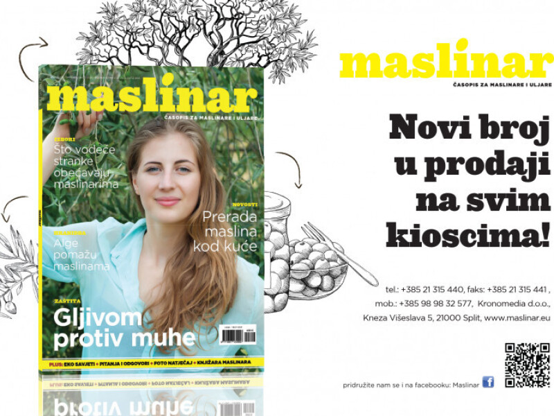 Maslinar za maslinare! U novom broju časopisa Malinar doznajte sve o korištenju gljive u borbi protiv muhe, primjeni algi u hranidbi maslina, obećanjima političkih stranaka maslinarima, pomacima u borbi protiv bakterije te još mnogo, mnogo toga.